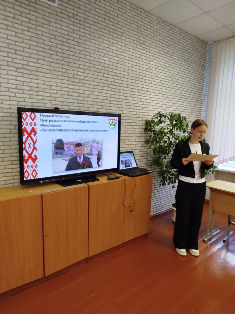 В рамках программы «Я. Моя. семья. Моя Родина» для учащихся 9 класса было проведено занятие «Лидер БРСМ — кто он?»