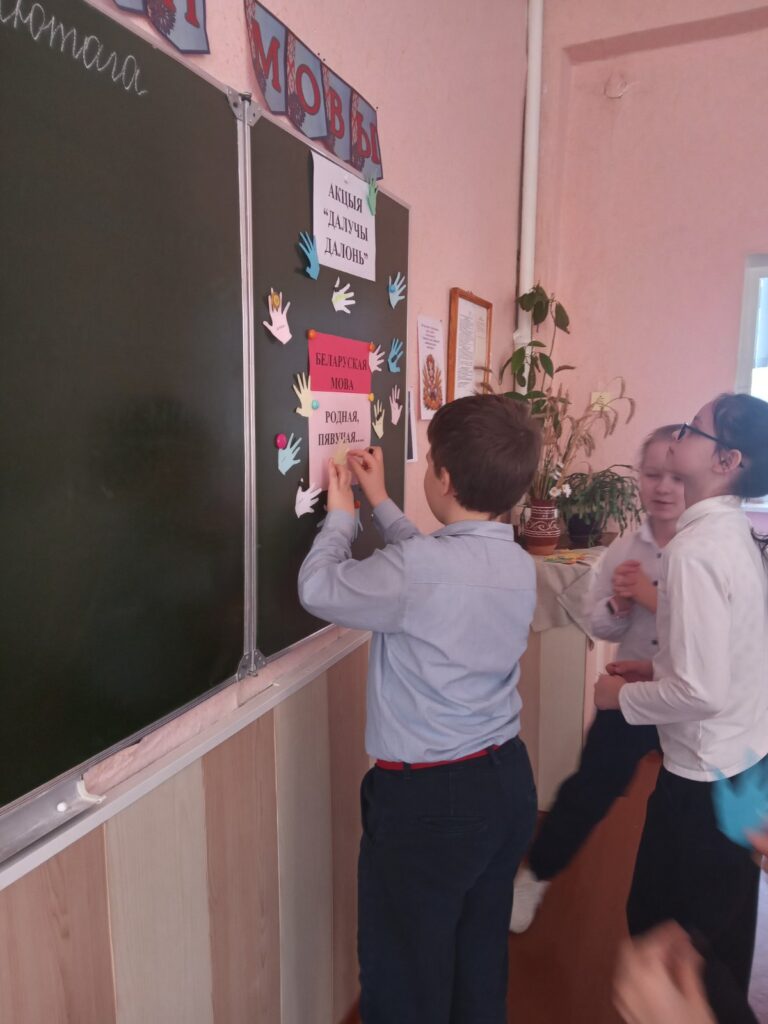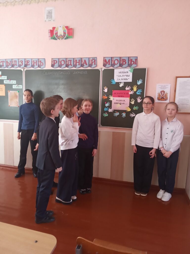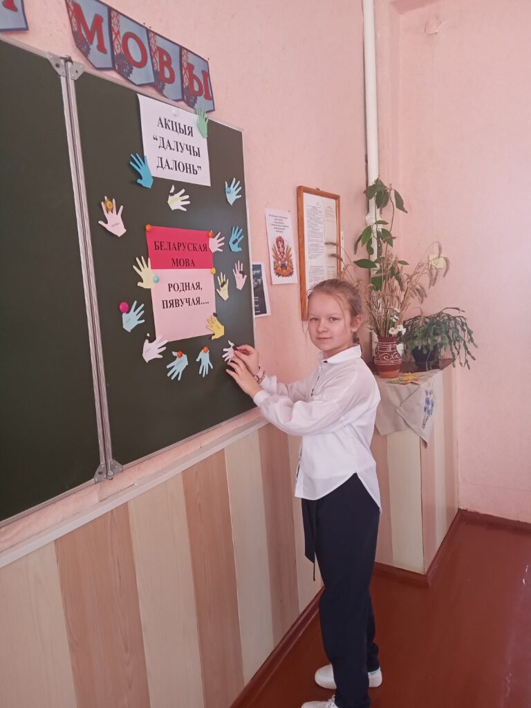 Родная мова пявучая, мілагучная, непаўторная… Навучэнцы прынялі ўдзел у акцыі «Далучы далонь», дзе прадоўжылі рад слоў, якімі характарызуецца наша беларуская мова.