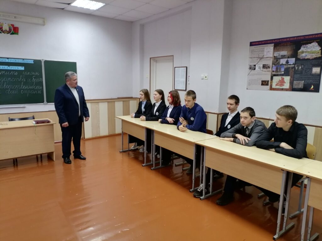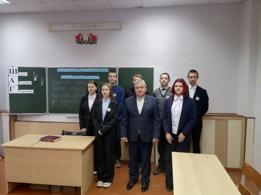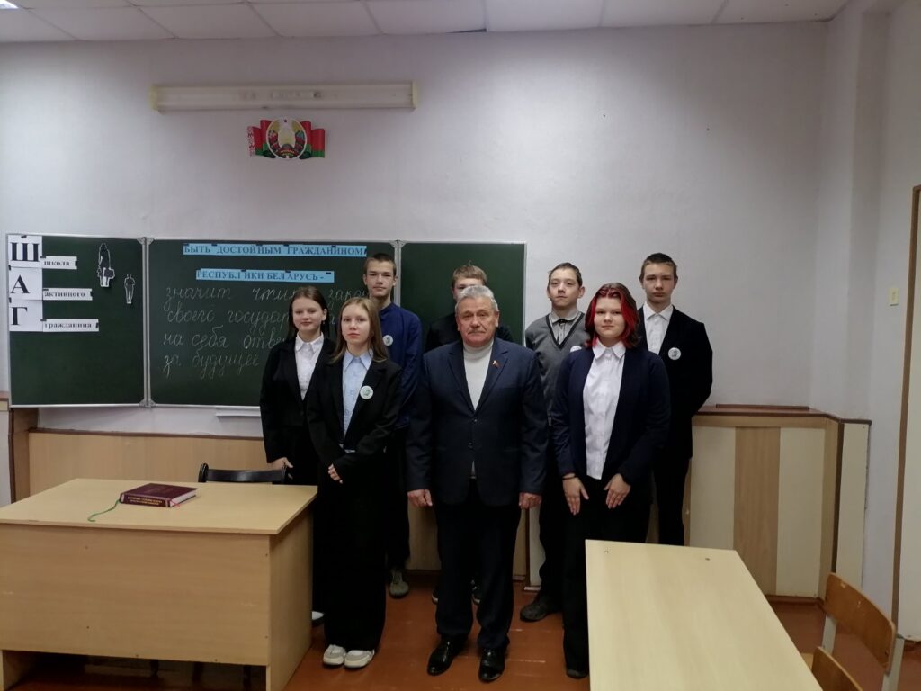 На другім этапе ШАГа “Мы разважаем” вучні сустрэліся з прадстаўніком органаў мясцовага самакіравання старшынёй Ярэміцкага сельвыканкама, дэлегатам Усебеларускага народнага схода – Барычэўскім Сяргеем Васільевічам. Сустрэча прайшла ў фармаце “100 пытанняў даросламу”. Сяргей Васільевіч у ходзе адказаў на пытанні паказаў, як з узростам чалавека растуць яго правы, абавязкі і магчымасці для ўкладу ў будучыню нашай любімай краіны.
